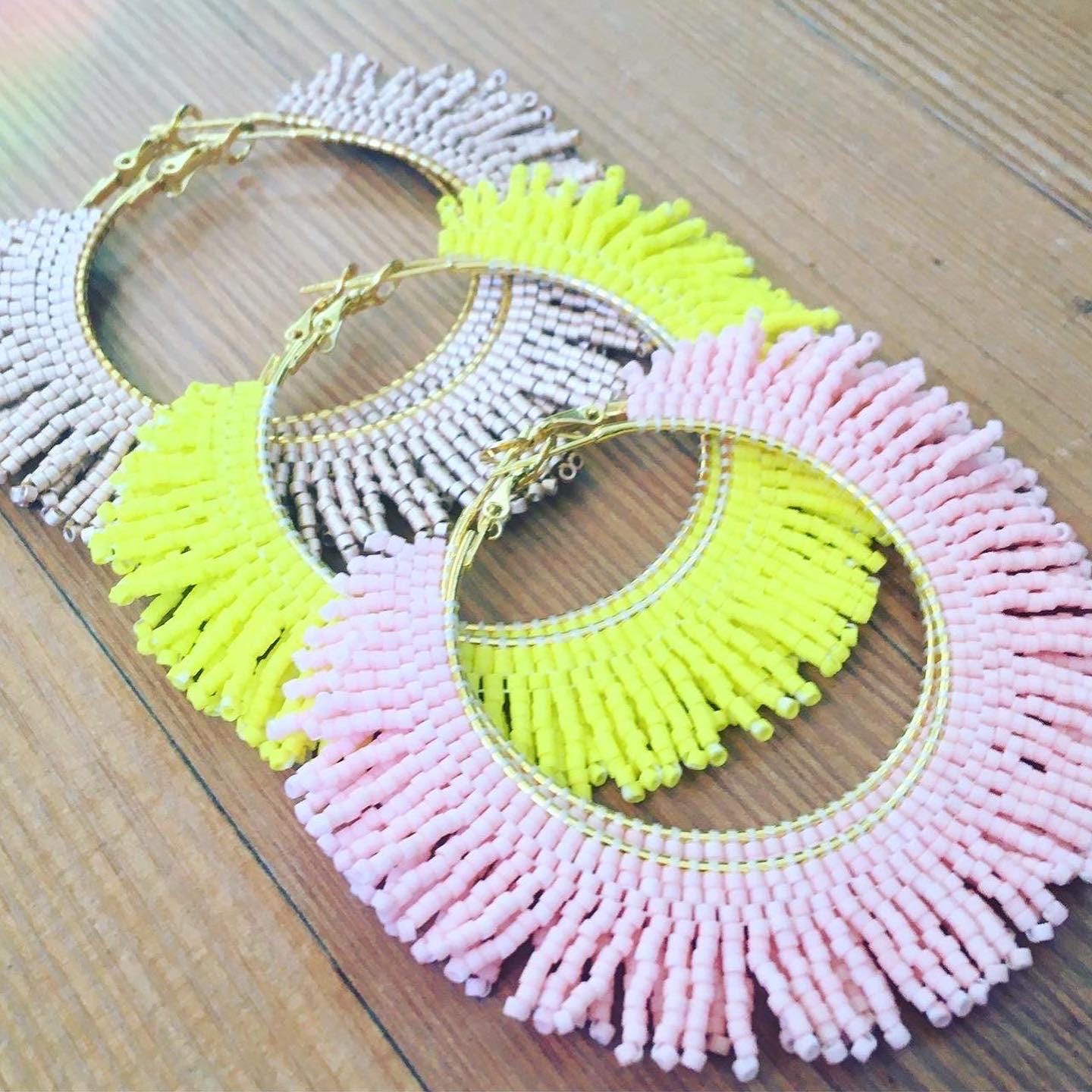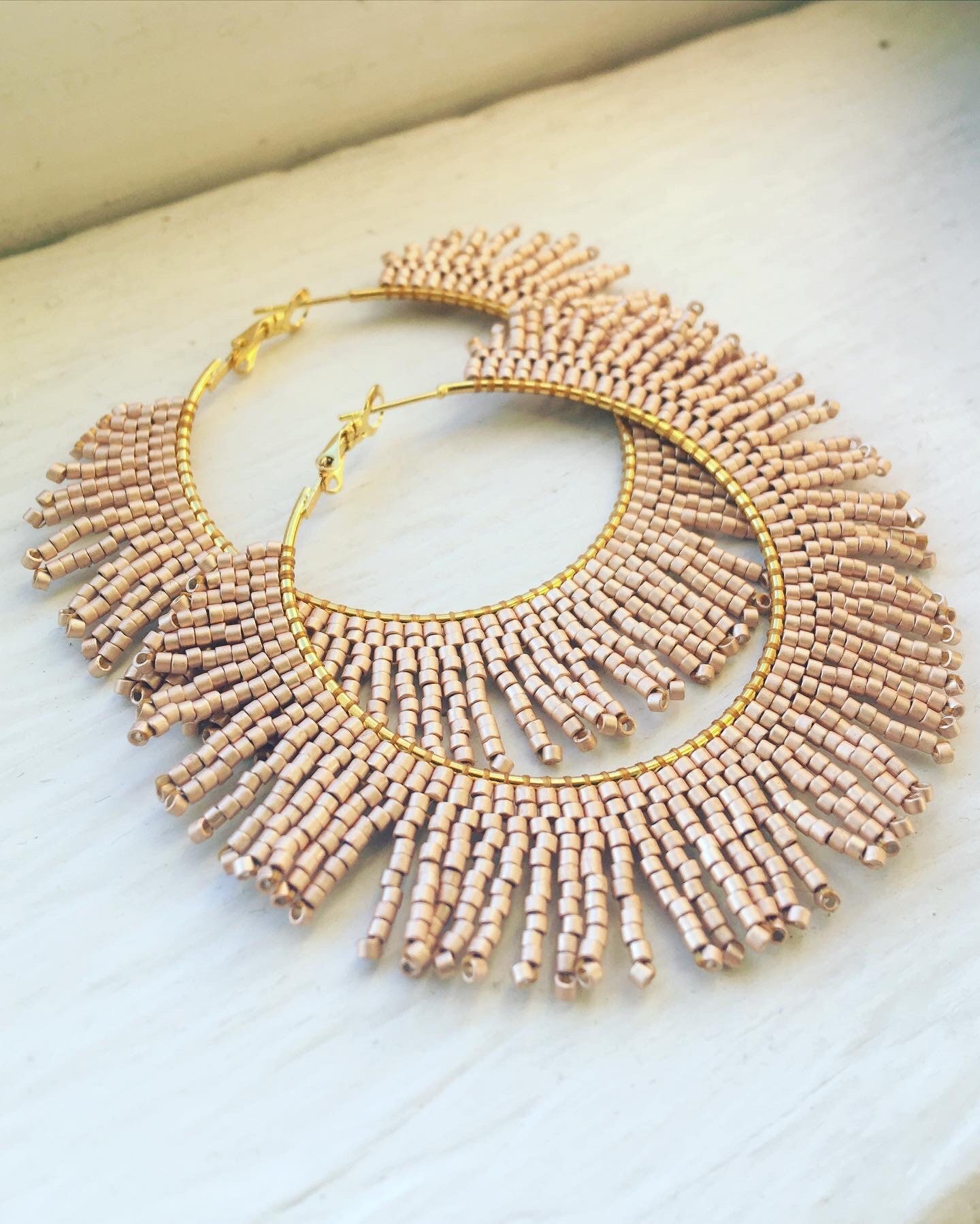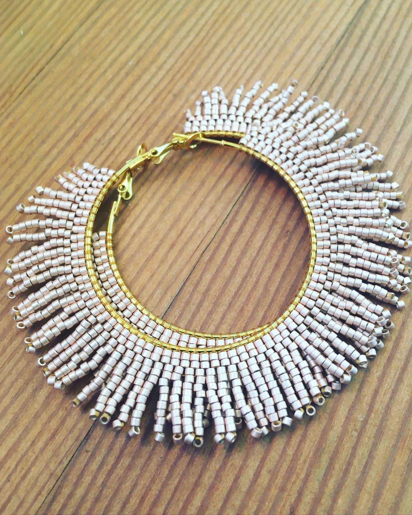 Hand sewn delica beadwork on nickel-free brass hoops.