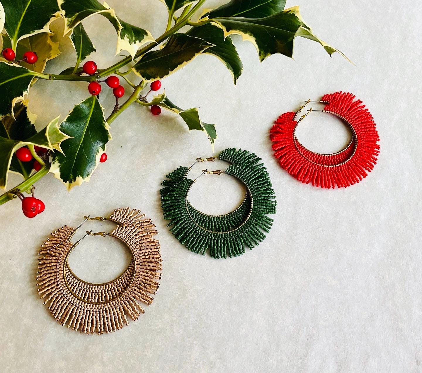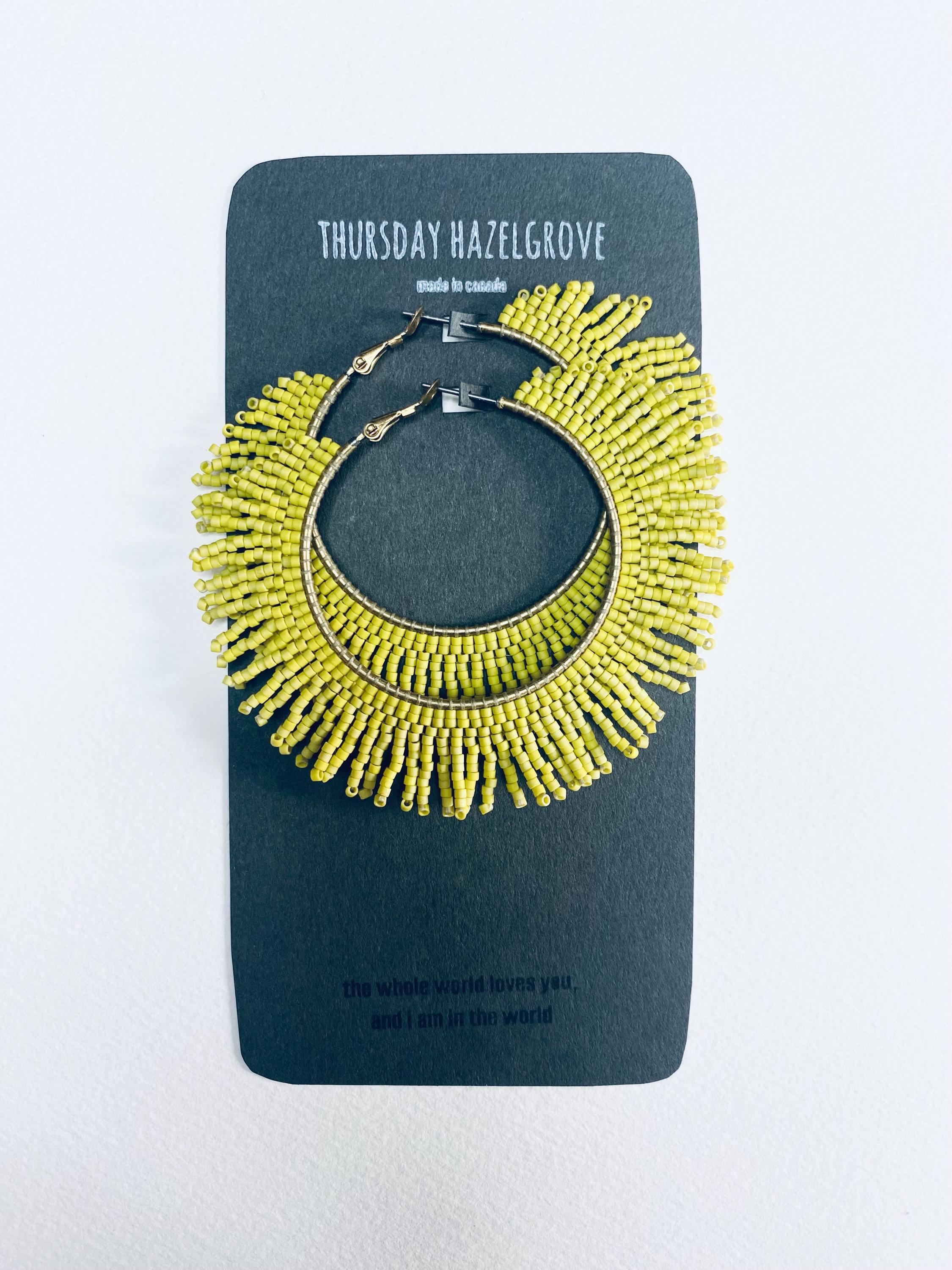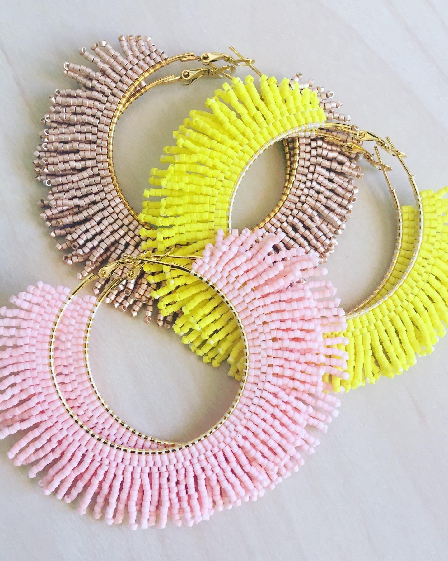 Hand sewn delica beadwork on nickel-free brass hoops.